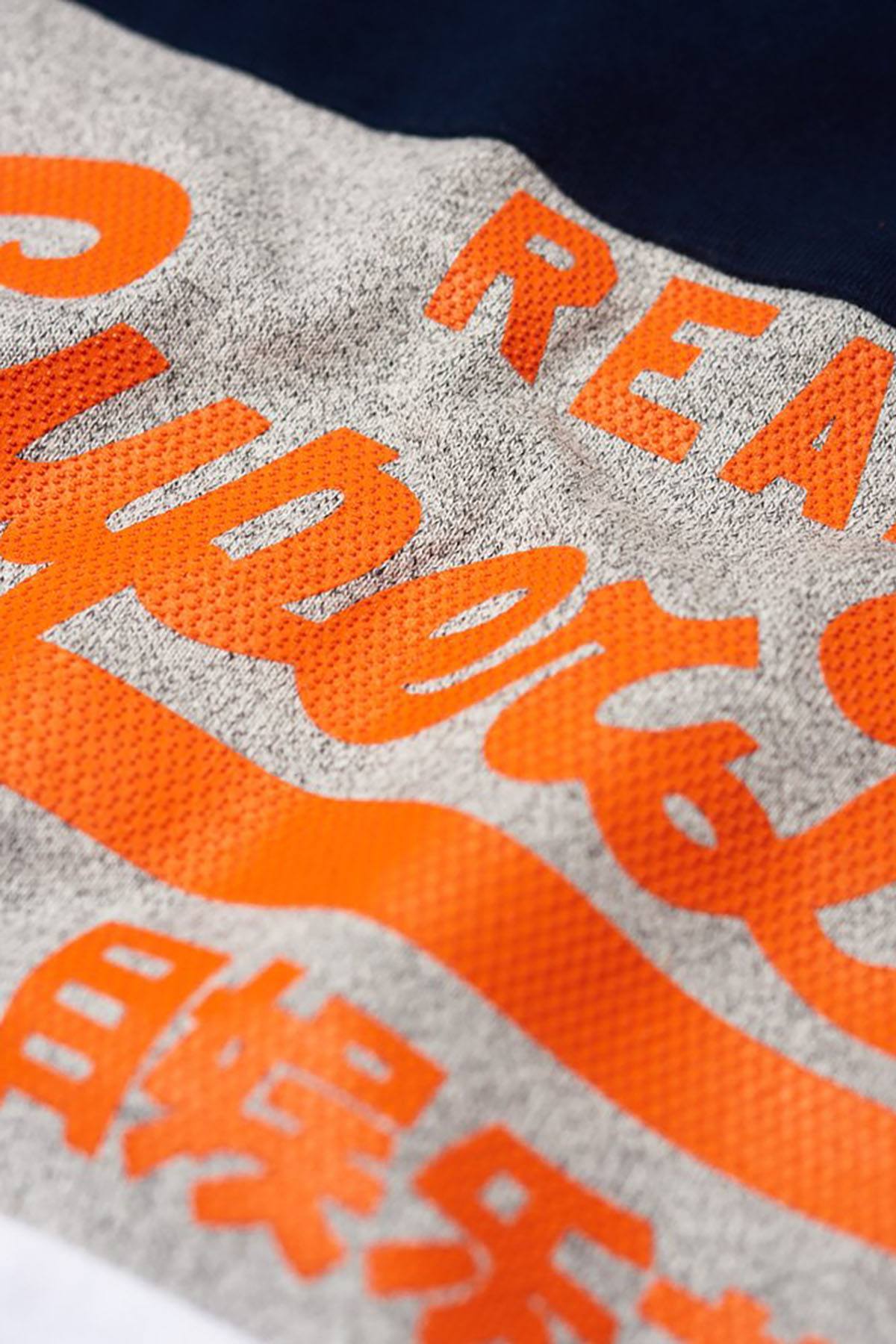 - A crew neck t-shirt featuring coloured panel design and a textured Superdry logo across the chest.