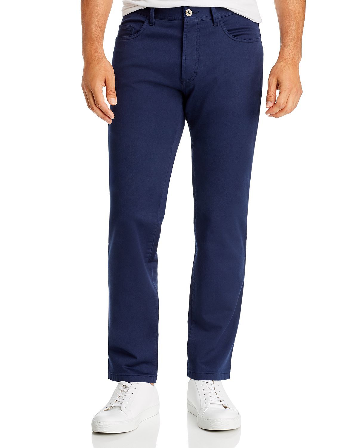 Slim Fit Stretch PantsFits true to size order your normal size; Designed for a slim fit; 32" inseam based on a size 32; Model measurements: 6'1" height 40" chest 31" waist 34" inseam wearing a size 32; Zip-fly with button closure; Flat front; Belt loops; Five-pocket silhouette; 98% cotton/2% elastane; Machine wash; Imported