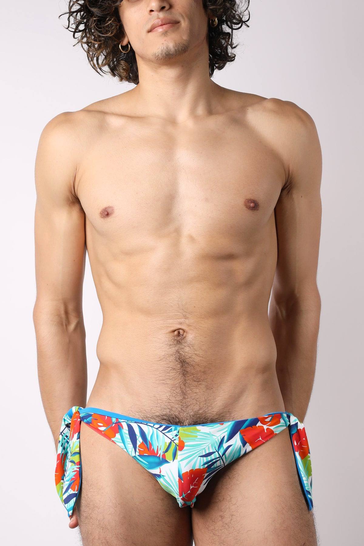 Back by popular demand! Our Tahiti side tie swim brief is reversible and gives you two looks in one. The print side features fanciful florals on perforated mesh with solid lining on the inside. Flip it inside out and the lining becomes a solid swim brief. Tie the sides as tight or loose as you desire to customize the fit.Designer Features: Reversible design, with perforated mesh floral print on one side and solid on the other; adjustable ties at sides. ** Guys with larger than normal thighs and butt, please order 1 size up.**