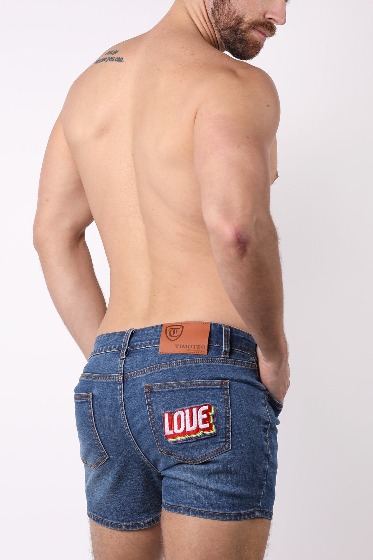 The ALL NEW LOVE 22 DENIM SHORT is made of high quality 2 way-stretch denim. It has a mid-thigh length, intentionally distressed detailing, a zipper fly with button closure, belt loops and classic 5-pocket design. Leather patch on the back displays the Timoteo logo. Contrast stitching throughout. Available in 2 washes, Light Blue & Dark Blue. This is a true to size short, for a much tighter fit, go one size down.