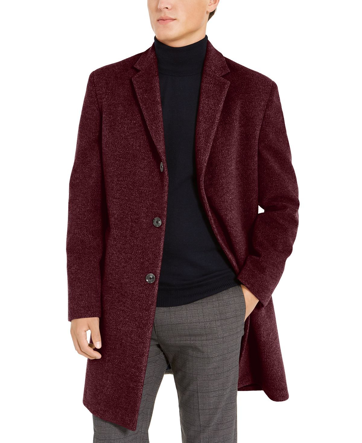 The ultimate choice in timeless outerwear this Tommy Hilfiger wool-blend overcoat makes every outfit part of a classic affair.Tommy Hilfiger men's coat; Notched collar; Three front button closures; Long sleeves with buttoned cuffs; Off-seam pockets at waist; internal pockets; Vent at back hem; Medium weight; Length = 38"; Shell: polyester/wool; lining: polyester; Dry clean; Imported