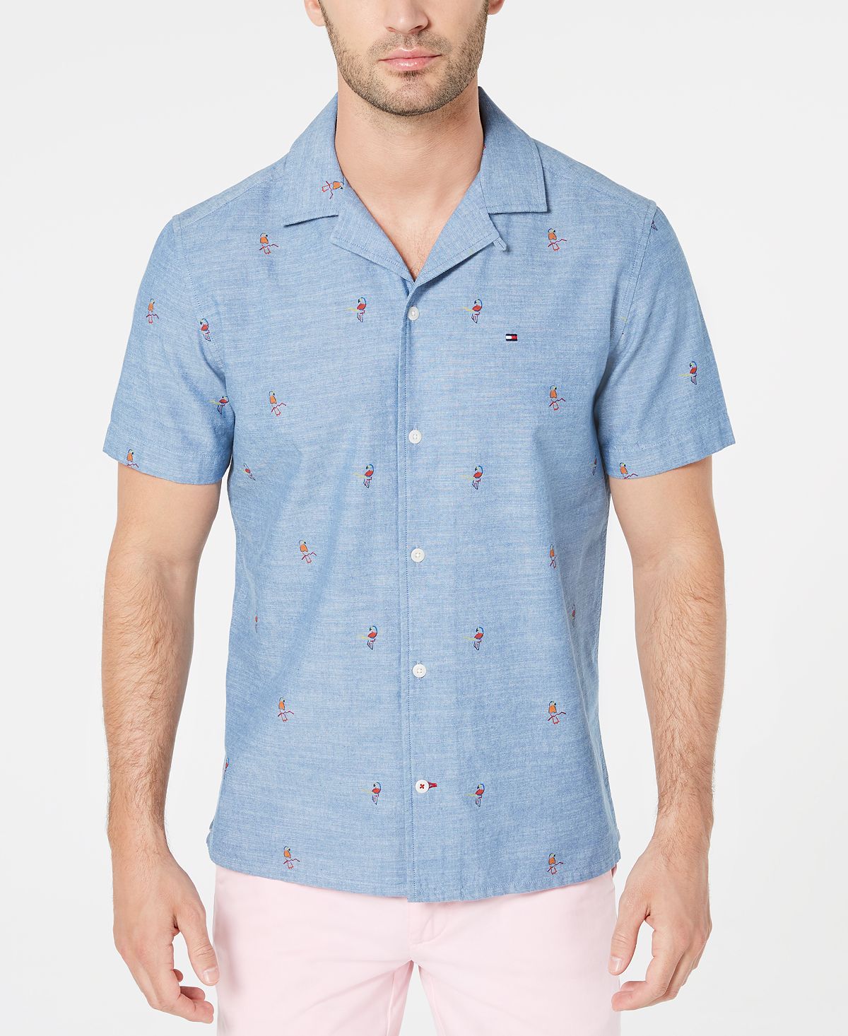 Tommy Hilfiger Manu Custom-fit Parrot-print Camp Collar Shirt Light Chambray
