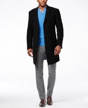 Tommy Hilfiger Men's Addison Wool-Blend Trim Fit Overcoat - Black
