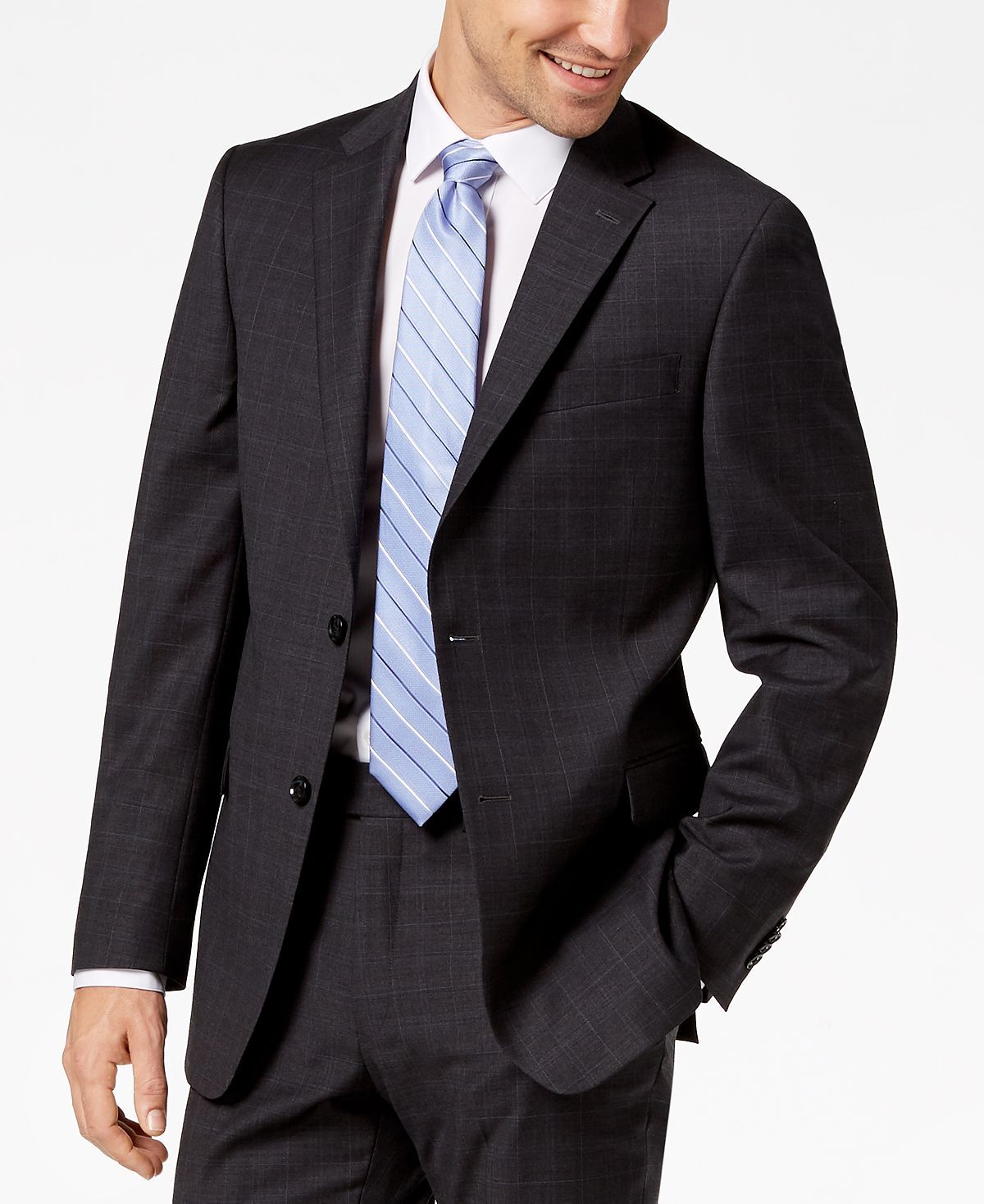 Tommy Hilfiger Modern-fit Th Flex Performance Plaid Wool Suit Jacket Dark Gray Plaid