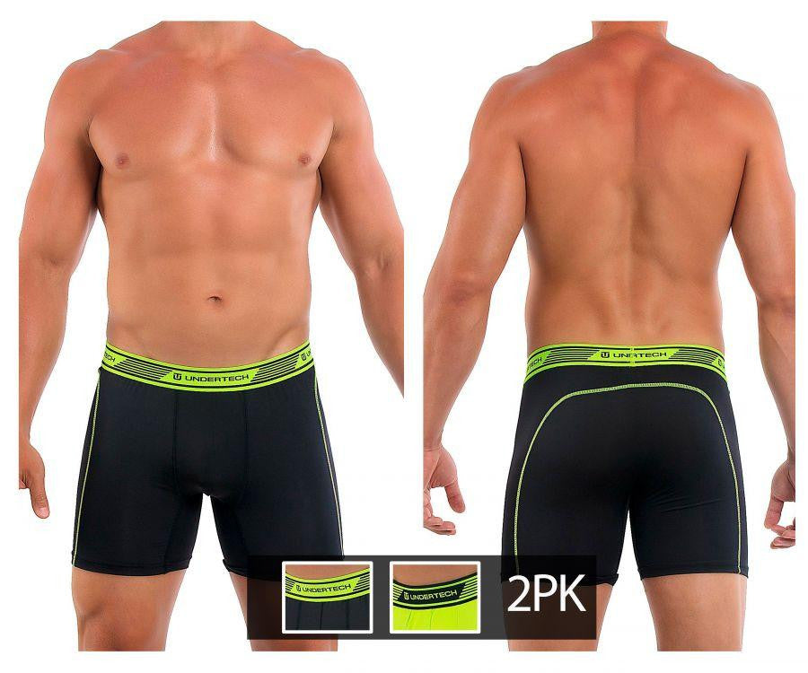 Undertech 347710-340 2Pk Solid Mesh Boxer Briefs Color Black-Green