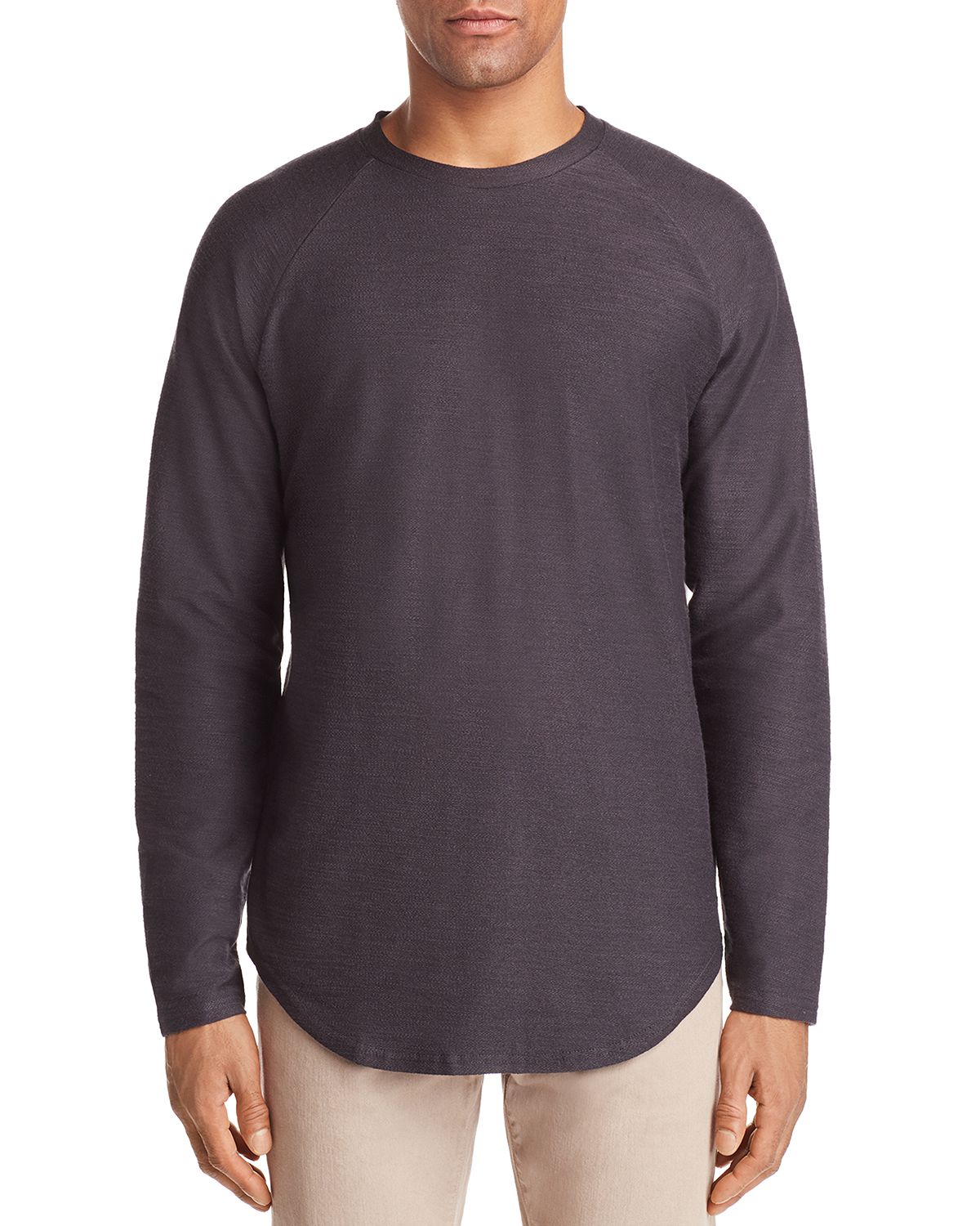 Fits true to size order your normal size; Designed for a regular fit; Model measurements: 6'2" height 38" chest 30" waist 34" inseam wearing a size medium Crew neck raglan sleeves long sleeves rounded hem textured material; Cotton/elastane; Machine wash; Made in Portugal